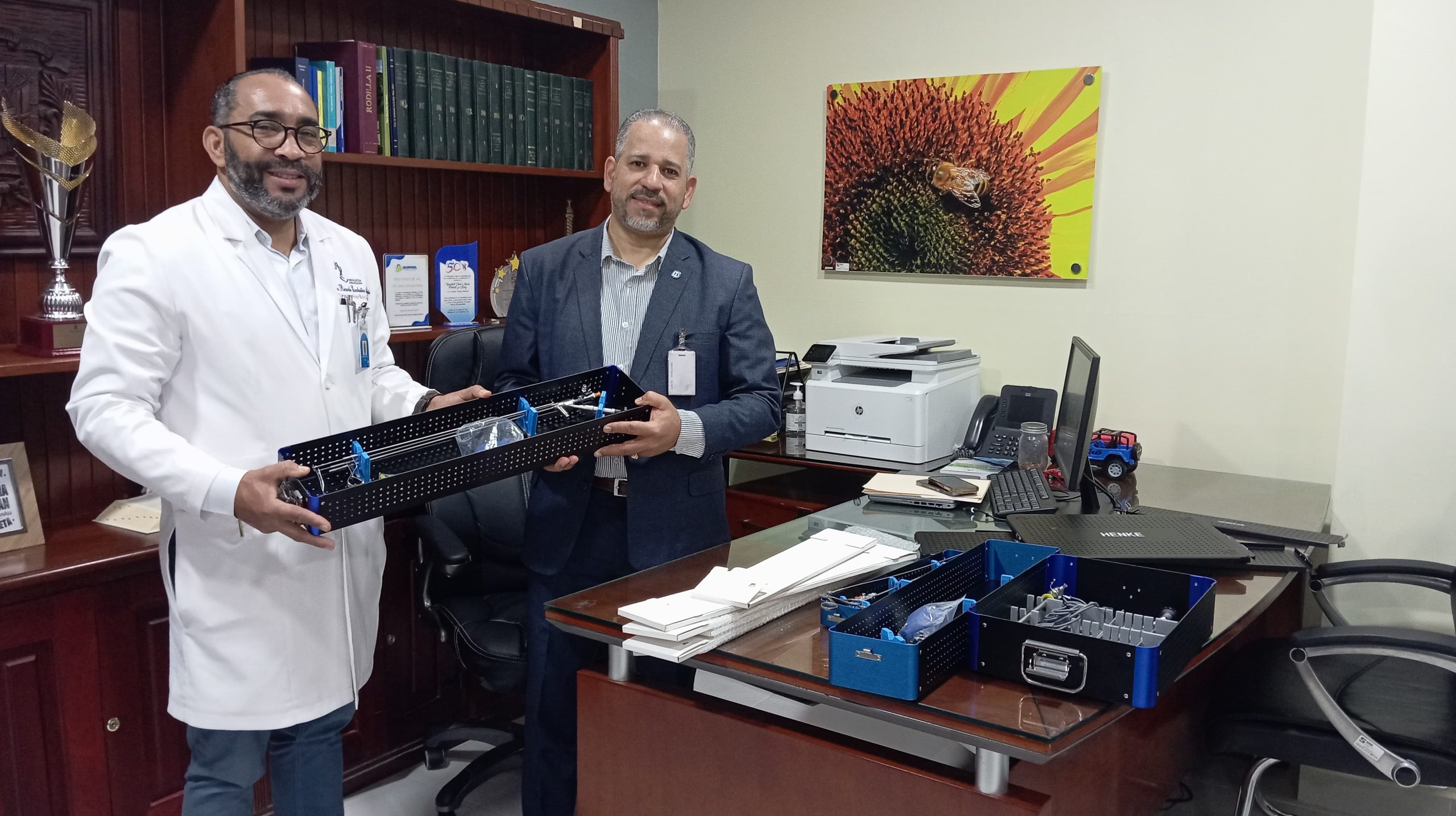 El Dr. José Luis Bautista, director de nuestra institución, entregó recientemente al departamento de Urología un conjunto de modernos equipos endoscópicos, que incluyen cistoscopios, ureteroscopios, pinzas para manejo de cuerpos extraños y otros instrumentos especializados.